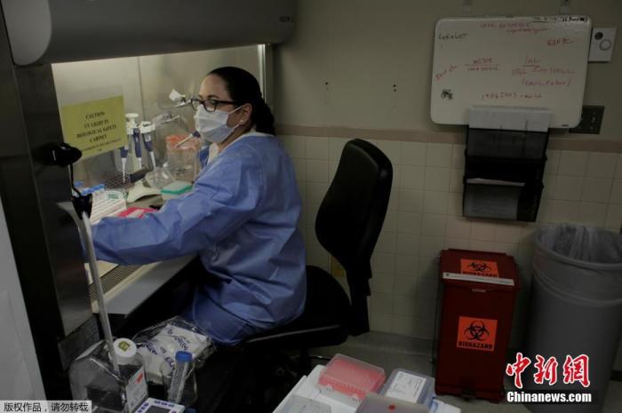 资料图:当地时间4月14日,美国华盛顿州刘易斯-麦考德联合基地的麦迪根陆军医疗中心实验室,微生物学家正在进行检测核酸。